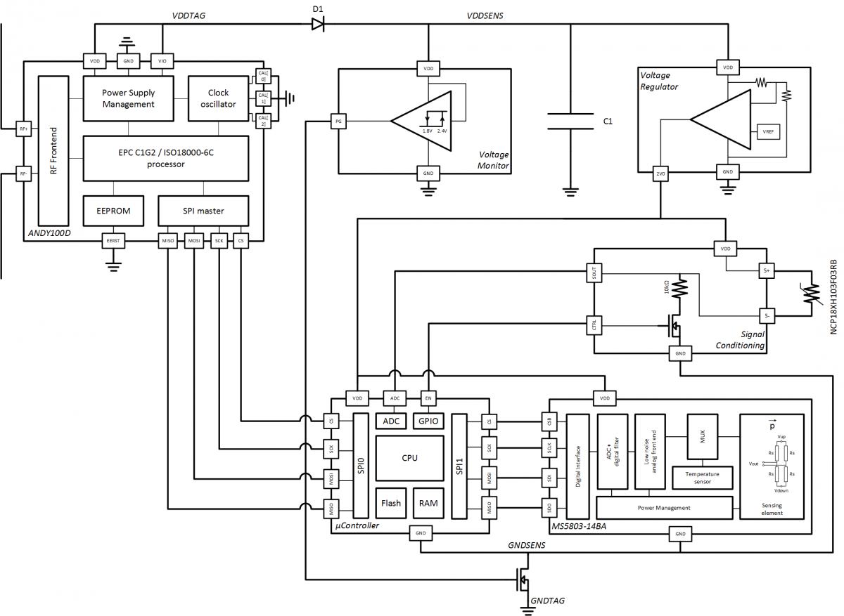 EVAL01-Truck-PT-RM-DKWB是一款无电池的UHF RFID压力传感器标签。 该设备具有Measurement Specialties的MS5803-14BA压力和温度传感器,压力范围为0 bar~14 bar,温度范围为-30°C~+ 85°C。压力精度为±40 mbar的压力精度和,温度精度为±1°C。